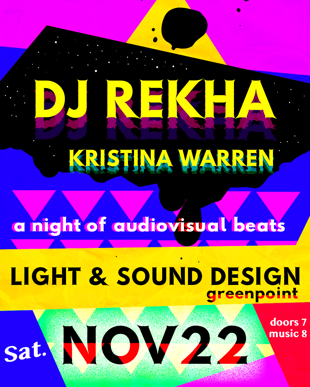 DJ Rekha (born Rekha Malhotra) is a DJ, producer, curator, and educator. Their dynamic dub and hip-hop informed DJ sets often incorporate South Asian Diasporic dance music with ears to a global sound that resonates with dancefloors across the planet. They have shared the stage with many artists including AR Rahman, Yoko Ono, the Roots, M.I.A and have performed in festivals, clubs, and community spaces worldwide including the inaugural Women’s March, London Mela, 5X Fest, SXSW, Sundance. They founded Basement Bhangra, in 1997, one of NYC’s longest-running club nights, which has developed polyphonically into a vast network of sound and collaboration. Kristina will also VJ for DJ Rekha - expect a multisensory and compellingly danceable experience. djrekha.com